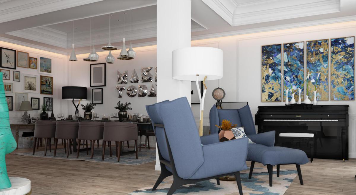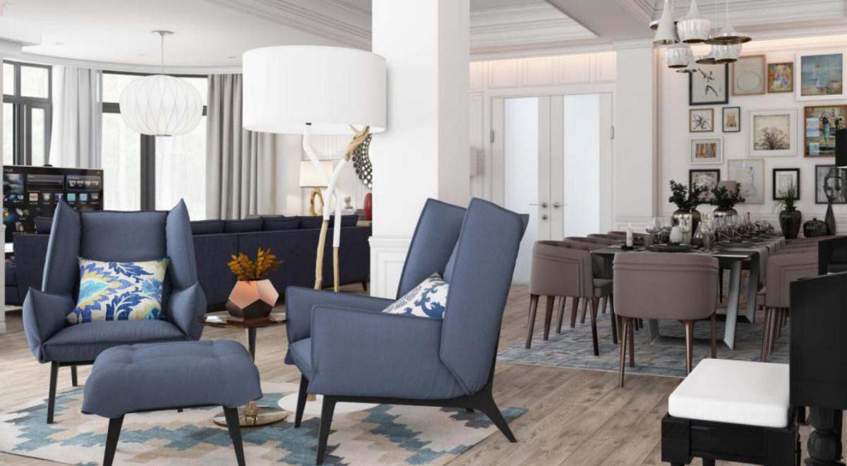 The interior is very rich. It combines many styles: high-tech, modern, classic, there are elements of the American style, art deco - in one word, contemporary.