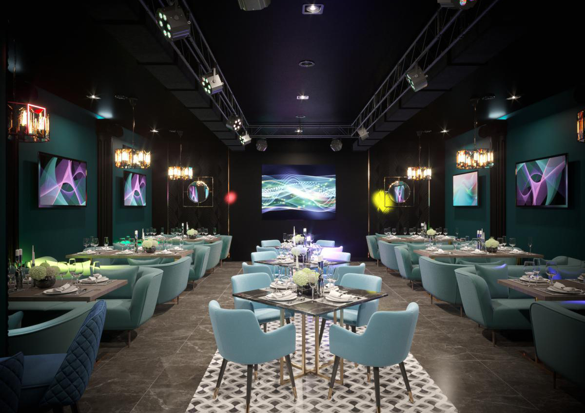 Помимо основного зала с танцполом и сценой в ресторане предусмотрен караоке зал, где можно проявить все свои артистические и вокальные возможности . Тематика караоке более сдержанная и близка к классике.