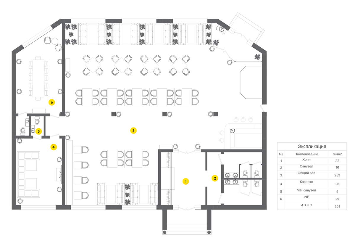 Ресторан расположен в г. Сарагаче в Казахстане. Фасад здания напоминает французскую загородную постройку 18-19 столетия. Интерьер наполнен светом. Лучи солнца попадают в интерьер через большие окна с белым обрамлением и прогревают все помещение. Над столами парят в люстры с подсвечниками, от которых исходят мягкий рассеянный свет. В дополнение к люстрам по всему периметру зала напольные светильники в виде старых уличных фонарей.