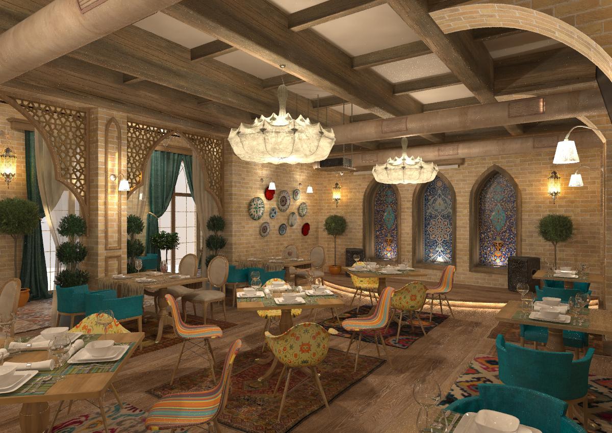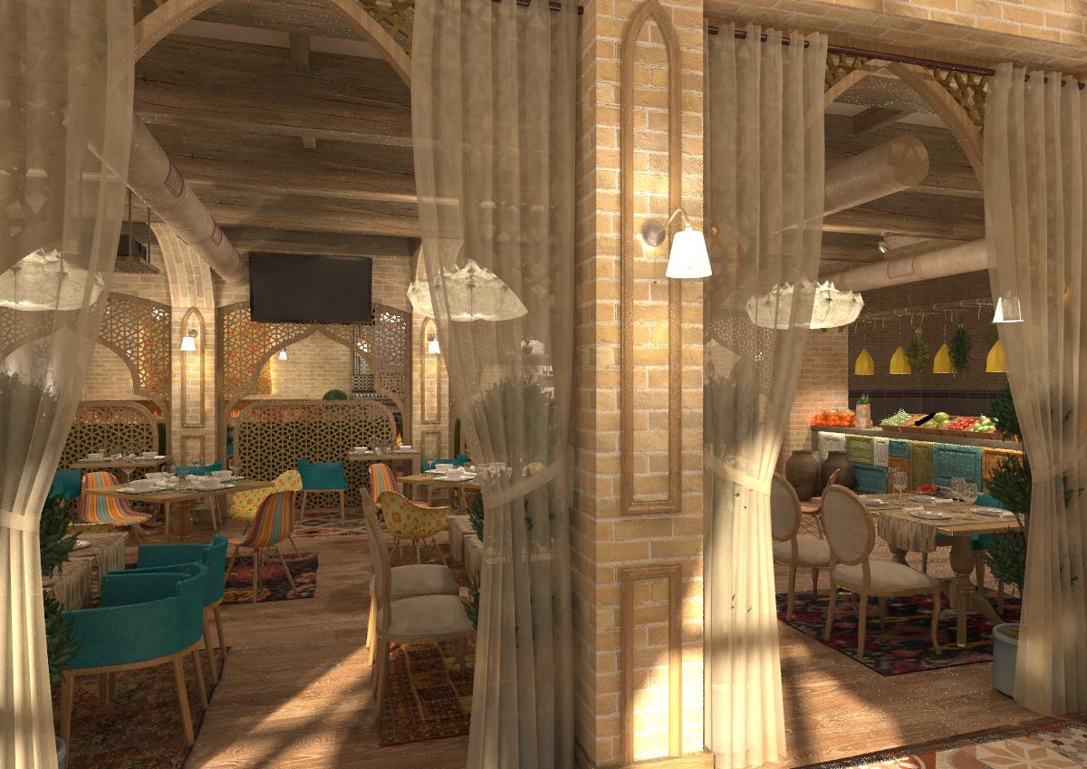 Стены выложены старым и редким николевским кирпичом. Так же на стенах имеется рельеф "Старый Баку" выполненый нашим коллегой Хамзой Фазыловым.