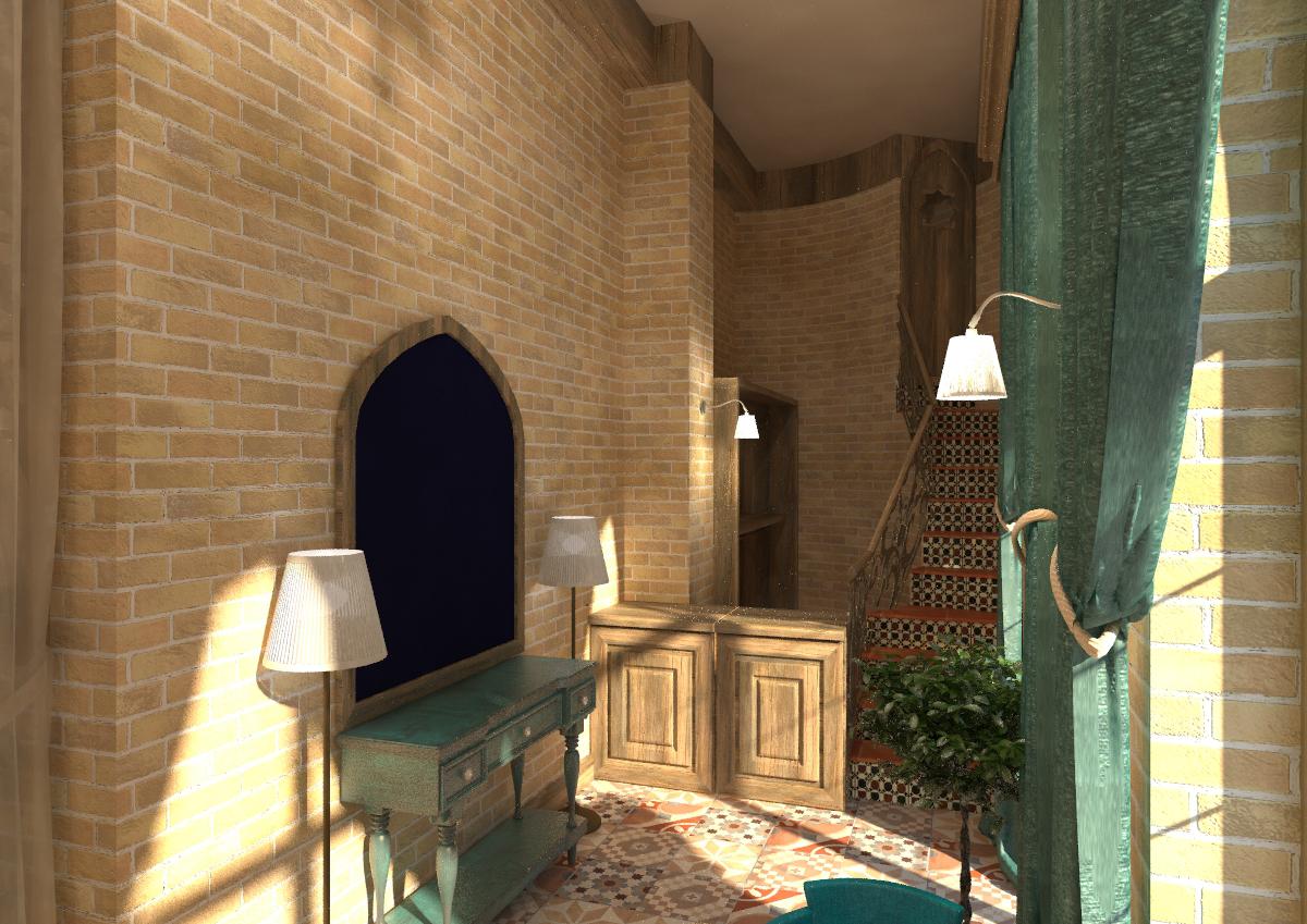 Подвесные светильники в марокканском стиле, добавляют интерьеру дух старины и в то же время наполняют его теплом. На полу обилие ковров, которые пестрят разнообразием узоров и придают атмосферу домашнего уюта.