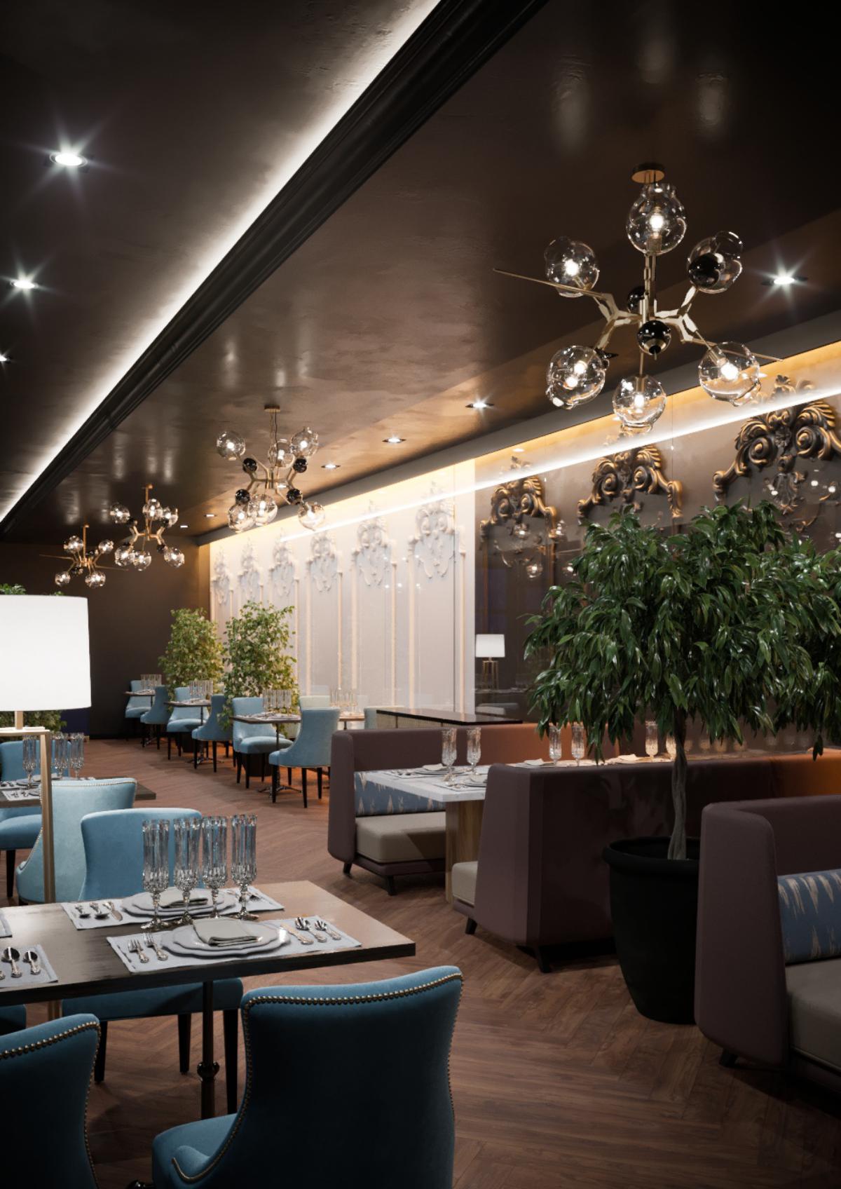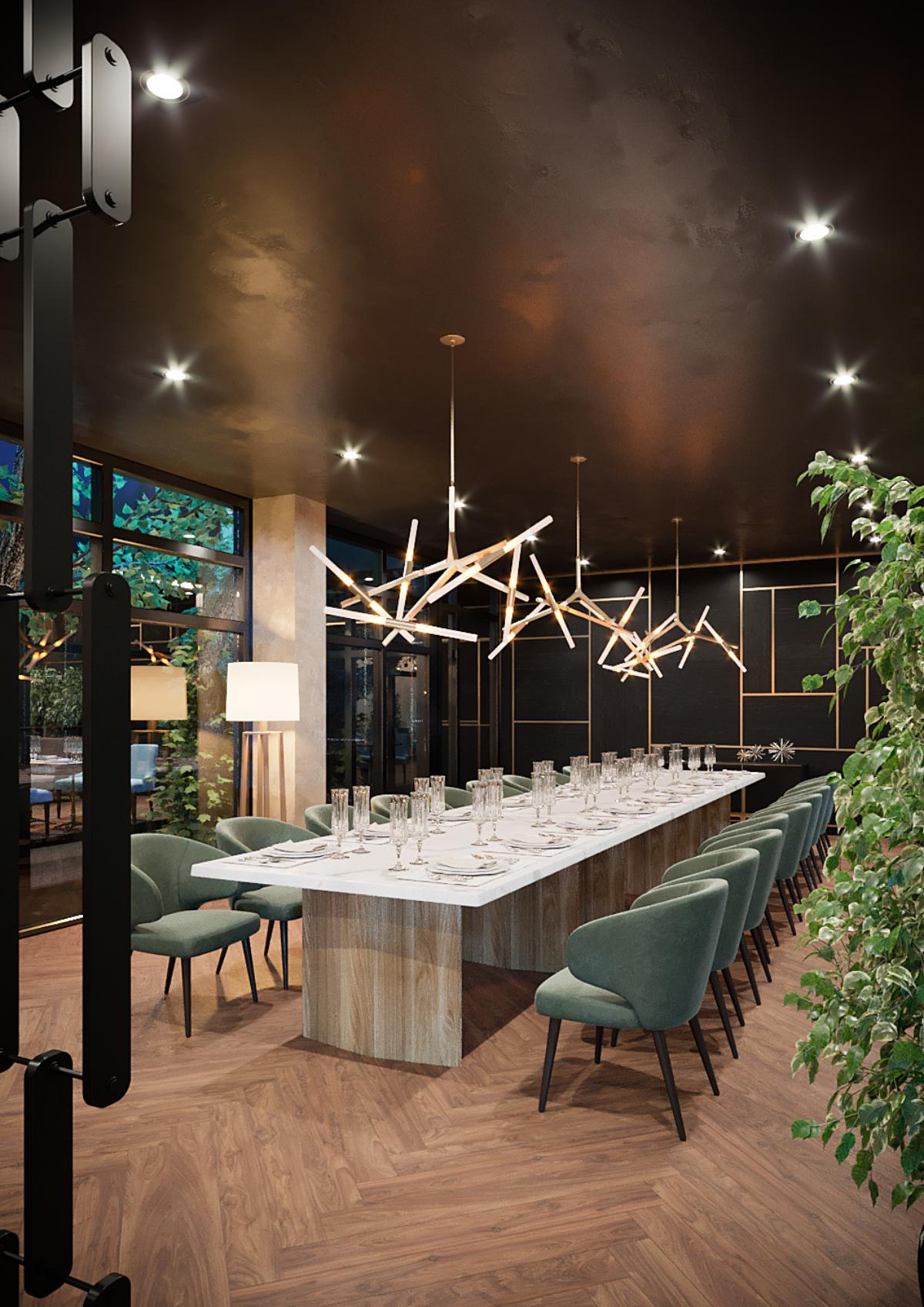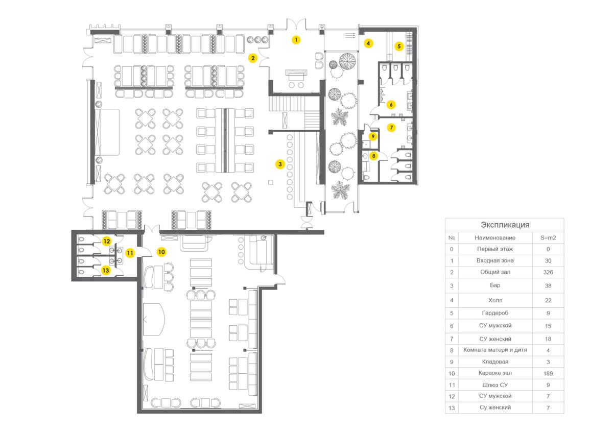 создать проект нового ресторана ,сохранив существующие деревья на участке