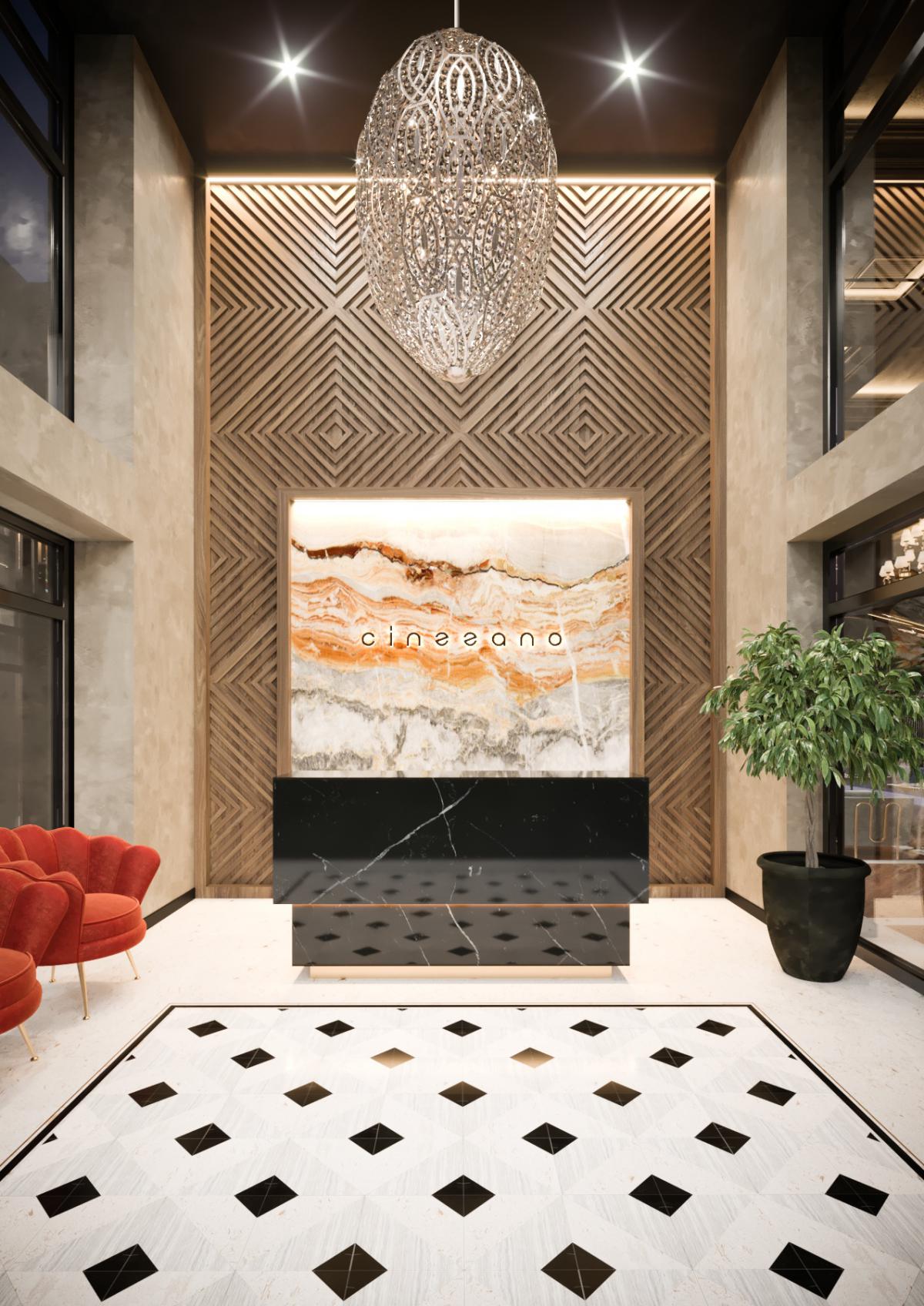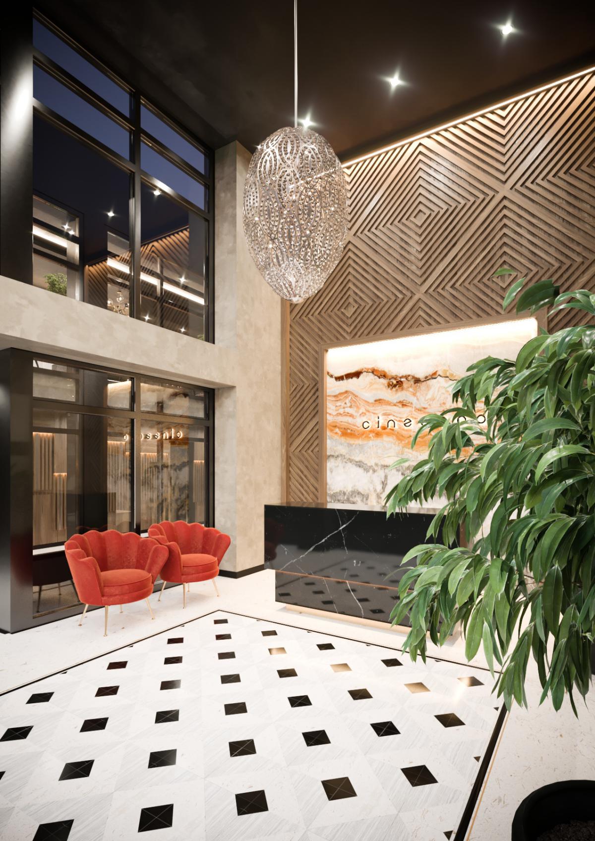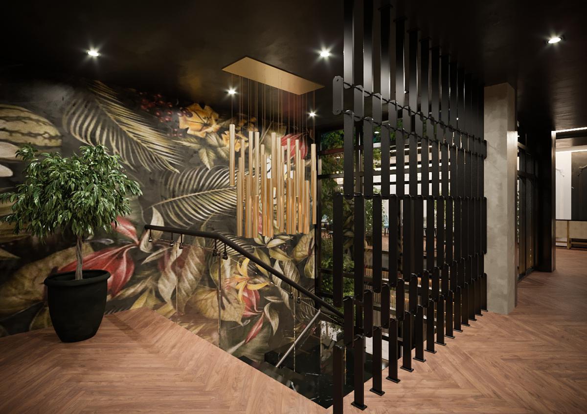 Внешний облик здания окунает нас в архитектуру эпохи постмодернизма. Здесь можно говорить о нескольких стилях одновременно : хай-тек, корпоратизм, неорационализм, экологизм. Фасад отделан минималистично - плиткой под бетон и темным стеклом. Оснавная идея, не нарушит баланс окружающей среды, так как здание было построено на небольшом участке земли с 30 летними дубами вокруг. Мы попытались максимально сохранить деревья, и как следствие появился наш внутренний дворик с дубами в середине постройки. Живые деревья являются нашей гордостью и главным элементом. Скрытая подсветка придает теплоту и романтичность на первый взгляд строгому зданию.