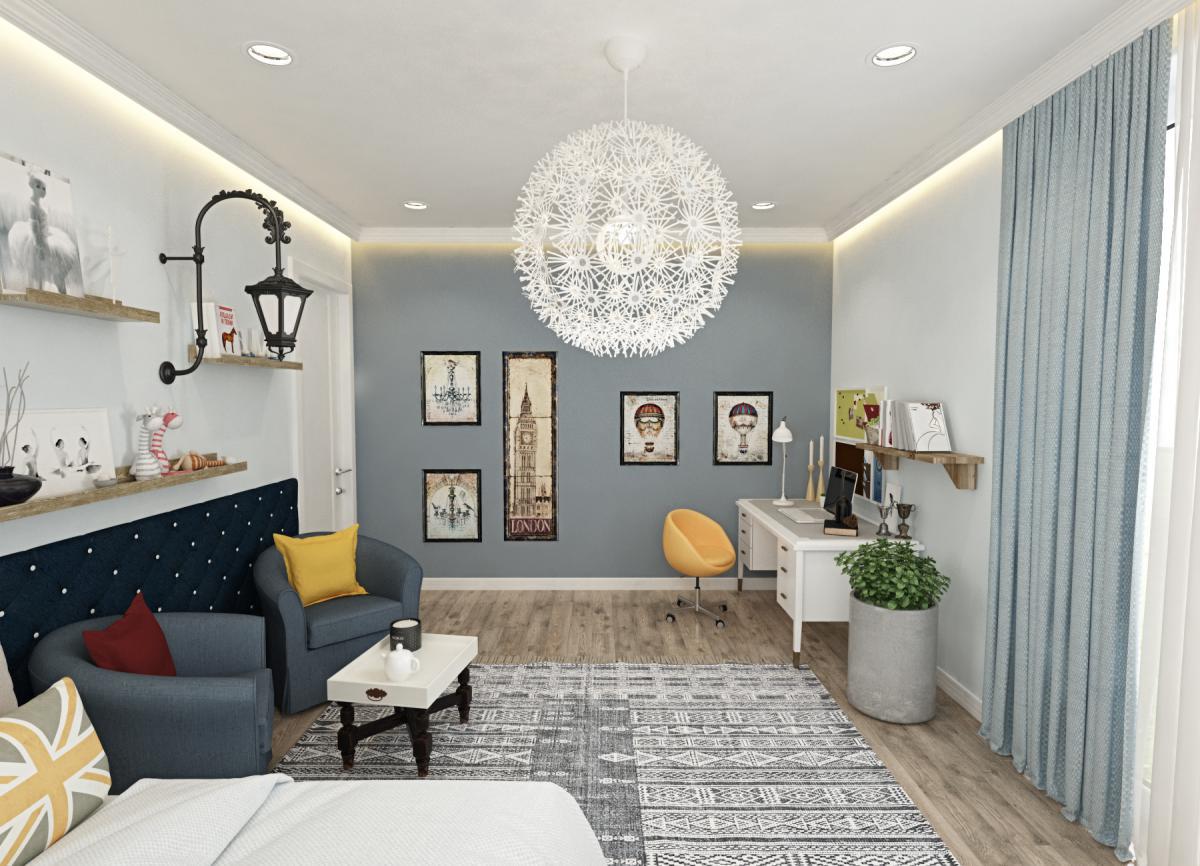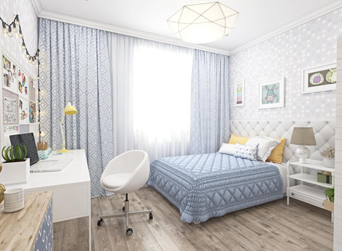 Children's rooms in the house are filled with light. To make children cozy and warm, we used several types of lighting: the main light in the form of ceiling spots, a decorative lamp and additional lights. Almost all the lamps in the nurseries are made of composite material and resemble an air cloud with a pleasant warm glow. On the walls we used painting and graphite boards for free creativity. Another must-have bedroom accessory is carpets. In each room we tried to pick up a carpet with the appropriate ornament.
