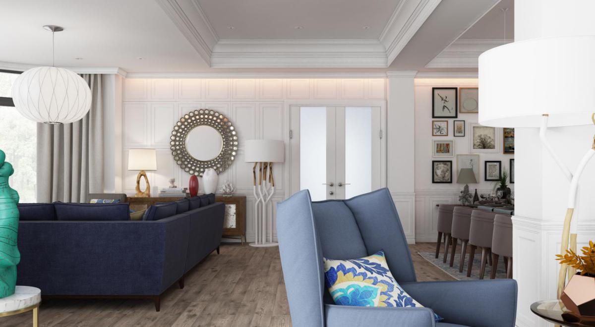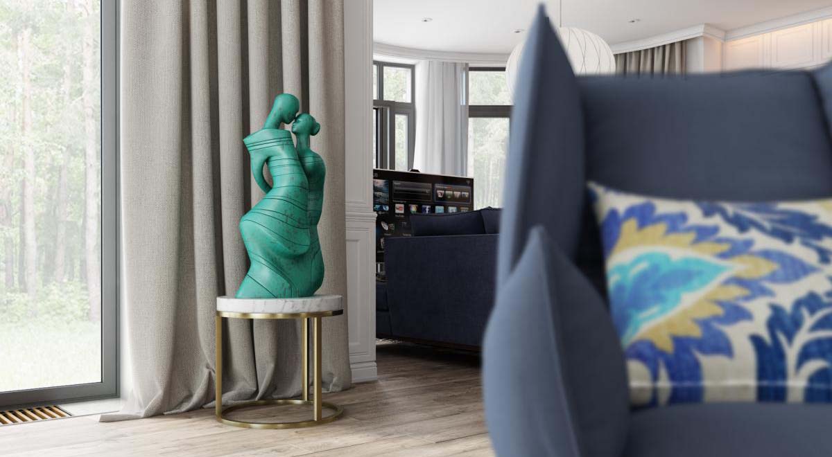 The interior is very rich. It combines many styles: high-tech, modern, classic, there are elements of the American style, art deco - in one word, contemporary.