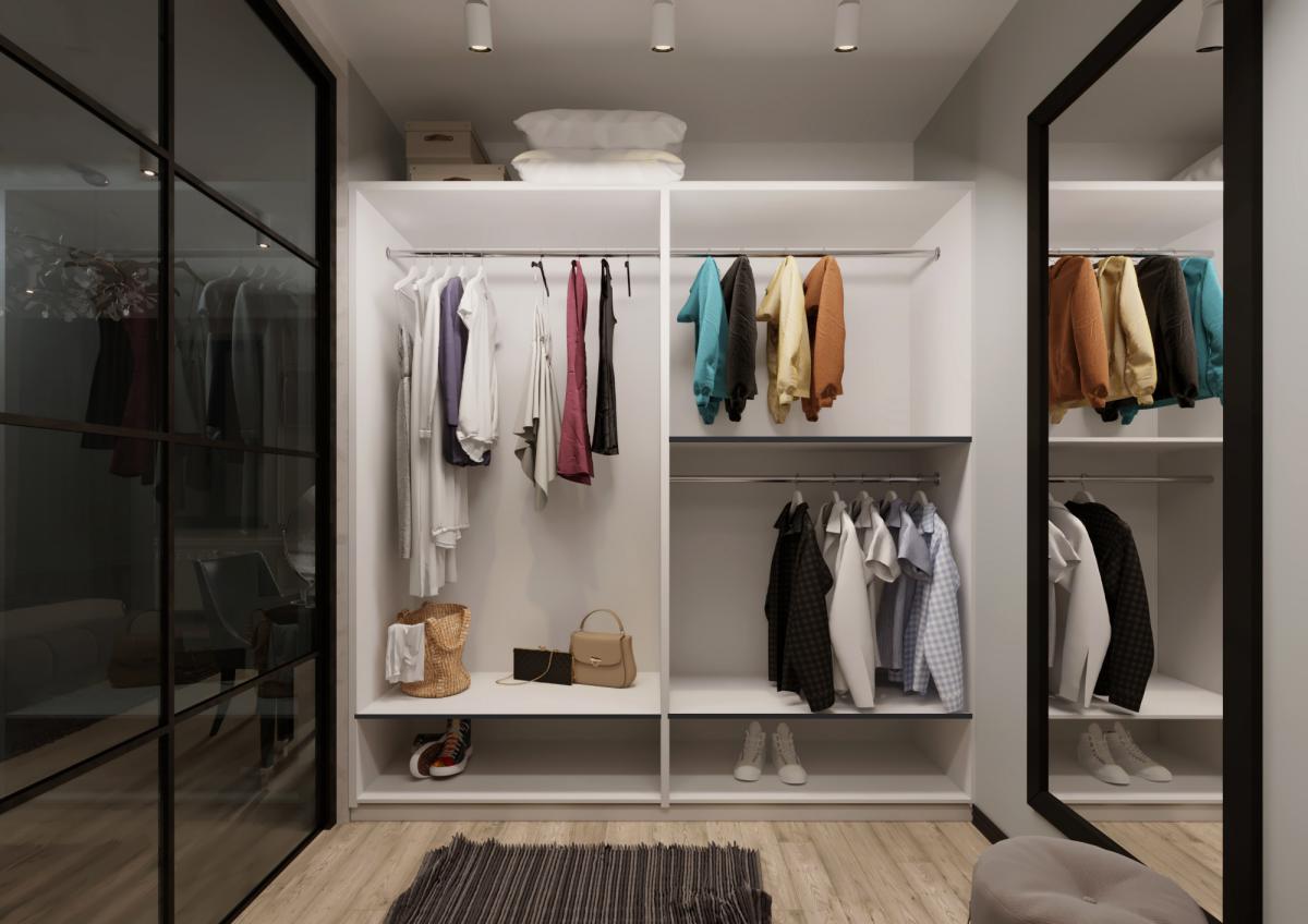 Санузел и гардероб отделены от спальни экстравагантными раздвижными перегородками в индустриальном стиле .