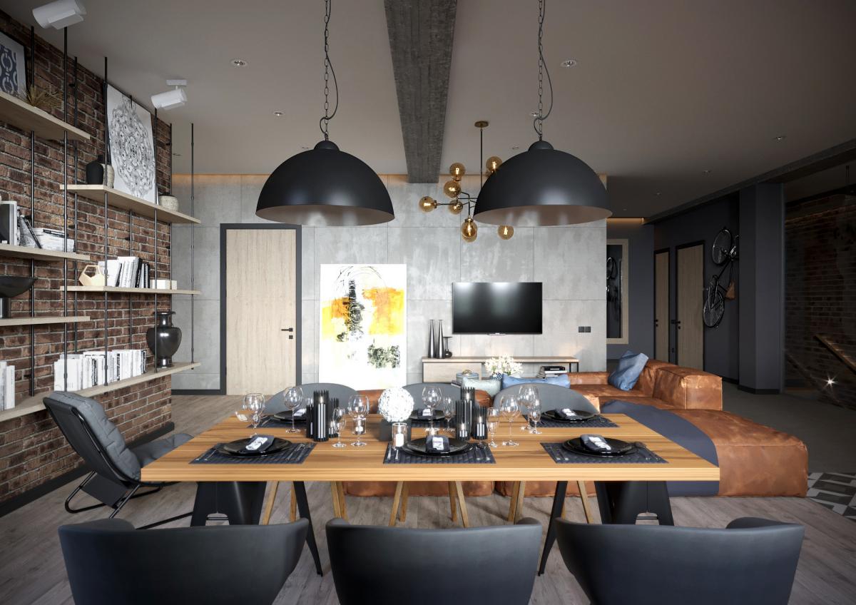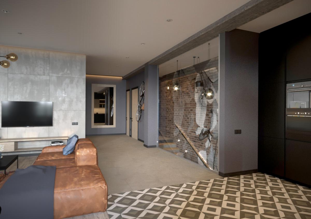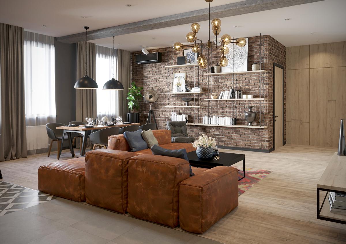 Интерьер квартиры для молодой семьи в стиле лофт . Квартира-студия для работы и отдыха.